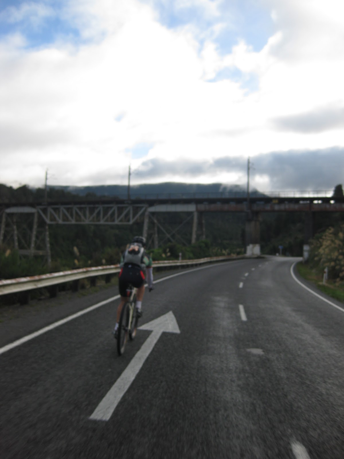 We were soon looking for a subway under the railway line. I pulled into a likely spot, but missed the entrance to it. Simon called me back, and my temper flared slightly. Damn the map situation! There was a shop at the far end of the subway, and we quickly grabbed a drink each before heading north towards a suburban control. Simon drafted me, and called directions from behind, and we were soon another 50 points up (55). Then, we turned south. My legs felt good as I hunched over my handlebars and tapped out a steady pace. We soon bagged another control (34) and then turned back into the wind to cross over the river for the second time. We screwed the exit off the bridge, circling under it before crossing over the road again to complete our circuit and resume our hunt for the underpass of SH2. We found it without too much extra drama, and were soon starting to grovel our way up the climb into Kelson.