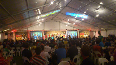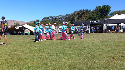 By virtue of my massage time, I'd arrived at the tail-end of a local band's performance, and was straight into the podiums for the Prologue: Men, Women, Masters and Mixed. After the top-3 were presented, the race leaders' jerseys were presented. One pair for the team leading each category, as well as the highest-placing all-South African-team, and the leading Exxaro development team.