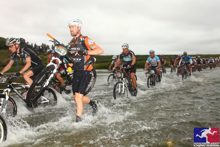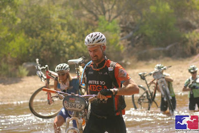 Despite being asked to ride through the early river crossing, and being about the only one in our vicinity not to do so, I managed to not make an ass of myself by falling in the water and getting "trampled" by hundreds! And, I basked in the glory of my still well-lubricated chain all the way to the first aid station.