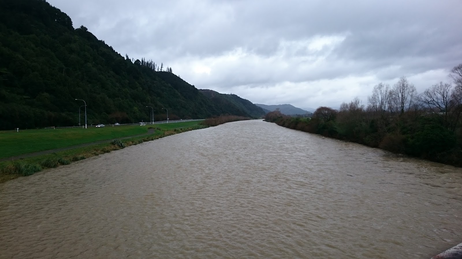 | A swollen Hutt River north of Silverstream Bridge |