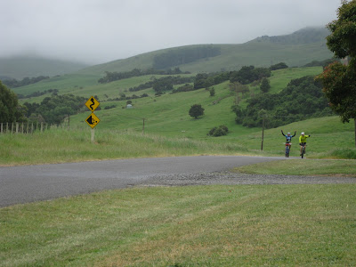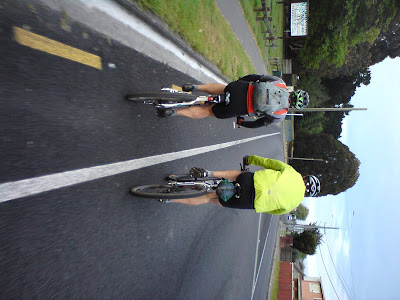 Alex is keen for a short recovery ride, and I join him. My knee hurts, but he seems happy to wait for me. I keep imagining I'll find him sleeping in the grass. The sun's not really out though.