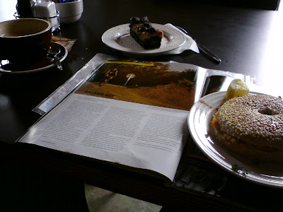 We leave the rain in Wellington, and enjoy dry roads on our northbound journey. We stop when Otaki starts, and enjoy a late lunch at the Brown Sugar cafe. The eggs weren't great, madam, but sitting outside, in the sun, was fan-freakin'-tastic. I grab a tasty-looking bit of slice on the way out.