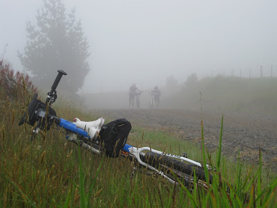 My stop is short, and little less casual than some others. I'm caught on the next climb by a woman on a SS. There aren't that many women in the field, and I consider it an honour. The next hill's a big one, and I manage to pass and drop her.