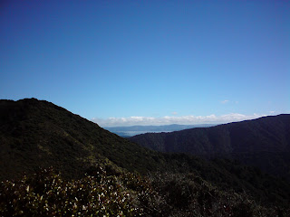 As we rose, the temperature got cooler and cooler. Despite the sun being out, the wind was whistling across the ridge we were climbing. By the time we got to the top - the third or fourth "peak" we came to - I was freezing. My shirt was sodden with sweat and the windchill was significant. We briefly admired the view out towards Cape Palliser and north up the Wairarapa before finding a sheltered spot for a quick feed.