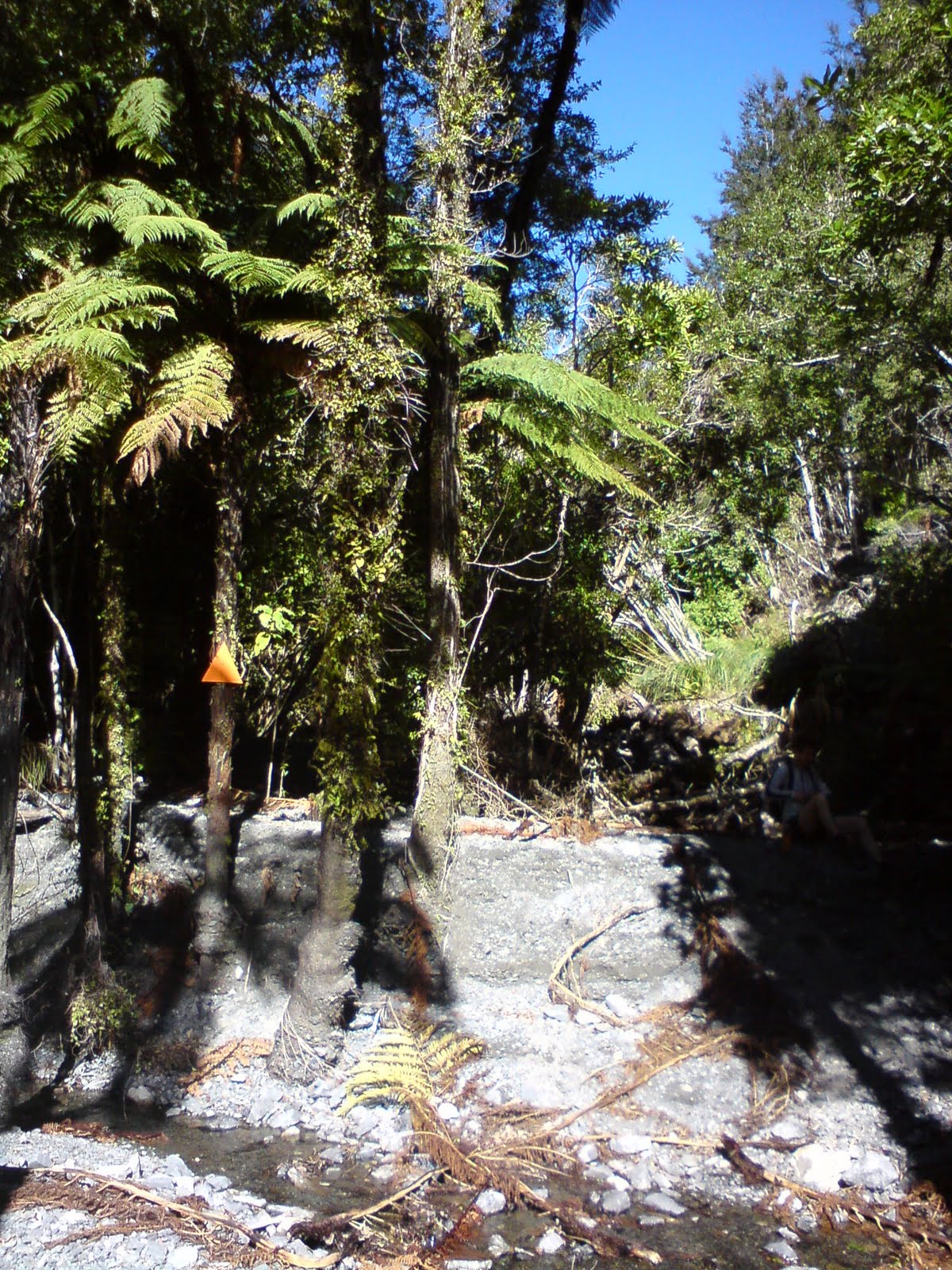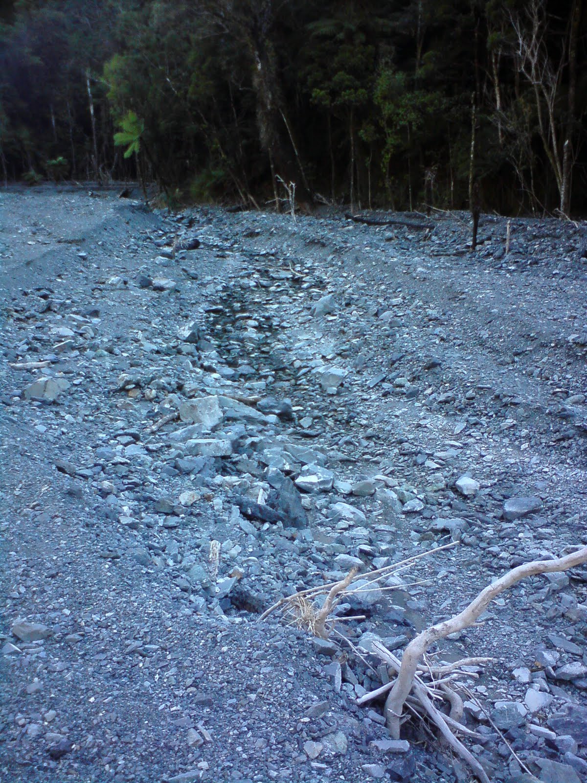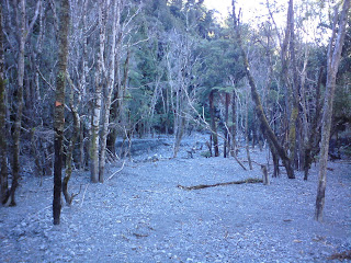 The track to Matthews starts by following Matthews Stream away from the river. It was immediately obvious that there'd been a huge slip up the valley somewhere, and the whole streambed was buried beneath a fairly uniform amount of gravel with barely a furrow in it.