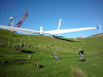 We finished up by heading out to the northern-most turbine, sneaking unchallenged through a work-site where foundations for a car-park were being laid out - Meridian look to be opening up access shortly to this single turbine.