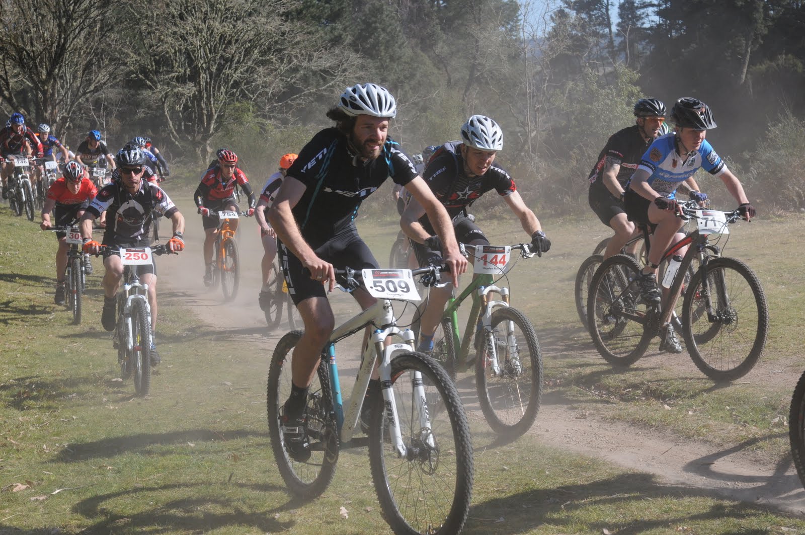 Alex was near the front, and he, along with everyone else, looked to be struggling to see through the insane dust being thrown up by the riders in front. He was clearly at the sharp end of the race when finished his first double lap, sending Megan off into the dust already a lap up on some teams. I quizzed him about the course, and it sounded pretty benign. When Megan arrived back, Alex was transferring the timing chip onto my ankle, not the other way around as she'd expected. Call me an idiot, but I wanted in on this action!