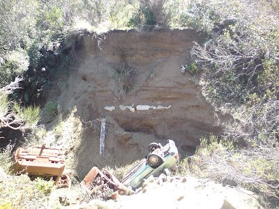 ... which ended all of a sudden in a bunch of native bush. We made our way through, walking our bikes, and were soon staring into an open car grave.
