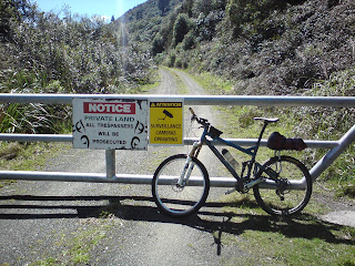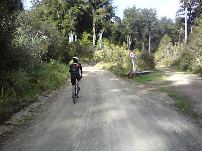 It was nice to have an almost bare bike, and no bag on. It was good that I'd loaded my pockets with pump and tube though, because at "7 down, 8 to go" I felt my arse-end squirming around strangely, and had to stop to put extra air in the tube. I was keen to the the hell out of dodge on account of the magpie which was coming pretty close to my helmet. I cussed that bitch out though, and was soon full steam ahead to Putorino.