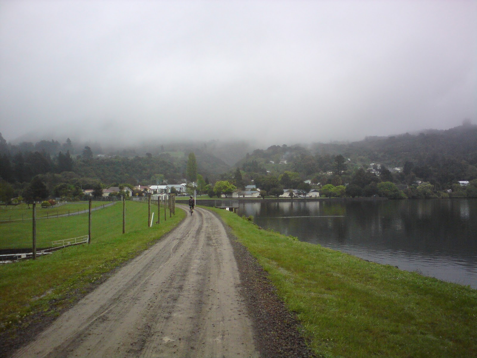 After checking out the info panel, we were getting stuck into the final climb of the day up to Lake Whakamarino and the settlement of Tuai. We chose the "back road", which was hugely ironic, given the fact that the parallel stretch of SH38 was gravel as well, and not much wider.