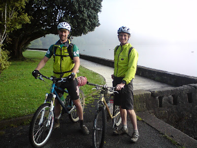 When we woke the next morning, we were in the mist, but it was obvious the sun was doing its darnedest to cut through. We were treated to a cooked breakfast: deep-fried sausages and hash browns, an egg each, and toast, but our chef decided not to offer us any porridge - she didn't look that impressed with it. After posing out front, it was time to ride out.