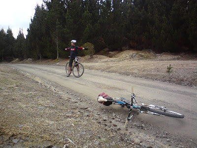 A track was there, though it was very minor compared to the massive gravel roads we'd been riding. It looked like a forgotten 4WD road, reminiscent of parts of the Karapoti loop. We got Simon's 1:50000 map copies out, and confirmed the route. Then, we proceeded!!!! FUN!!!!!