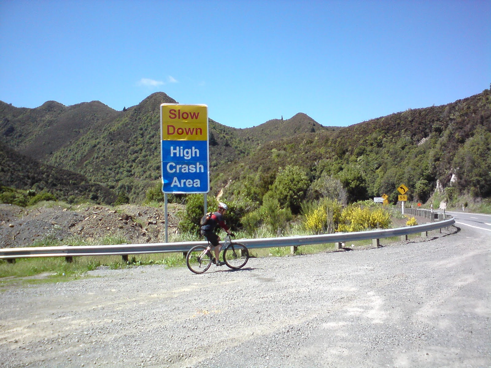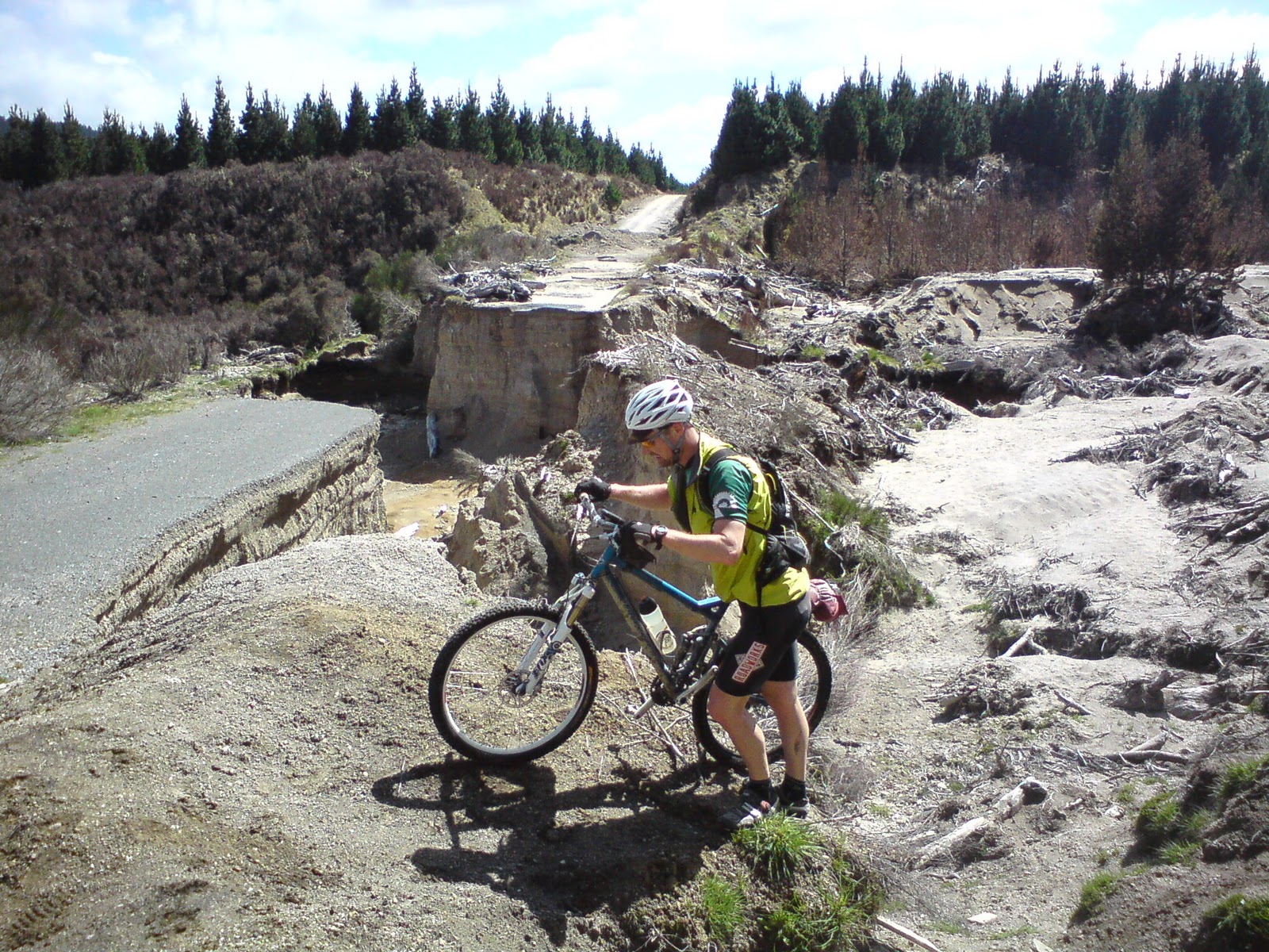Before too long we were dropping into a valley which would take us out to SH5. I almost came a cropper in a rut, but managed to keep my bike upright! Luckily it was dry, and I wasn't being hampered too much by the missing brake. There were times where I'd find myself enjoying letting the bike go a little too much though, resulting in a bit of a pucker while I reeled it in!