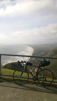 I decided to plug on at Pauatahanui rather than stop for yet another coffee. The Haywards climb passed quickly, and I felt quite at home on the fast descent. The Colnago is beautiful to ride loaded up, and the wheels Oli built especially for the job, while obviously sluggish compared to my race wheels, roll beautifully.