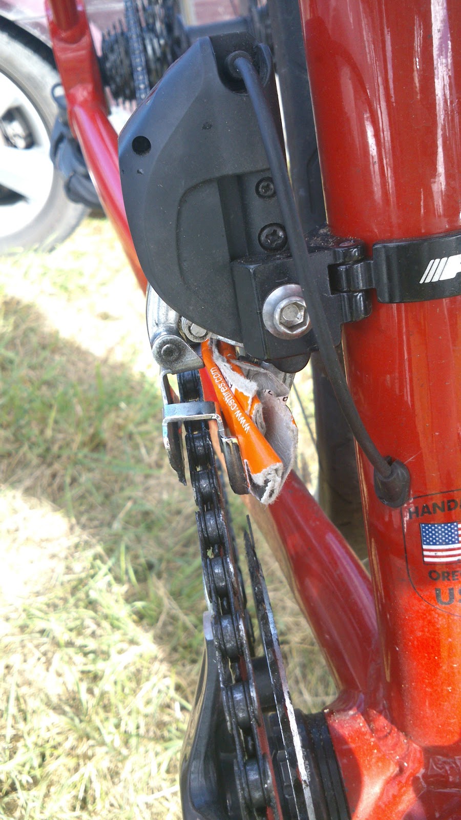 Back on dry ground, I glanced back at the river, and noticed for the first time the rail bridge about 100m down-stream of where I'd crossed. I'm kind of glad I hadn't noticed it before, as no matter how inadvisable it is to carry a loaded road bike across a river, trespassing on a rail bridge is surely worse...
