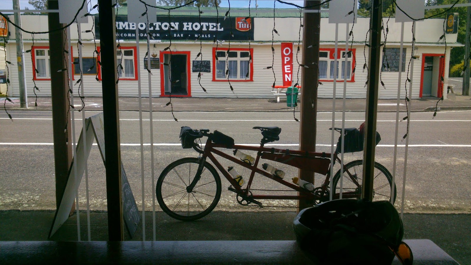 We soon reached Kimbolton, and the first signs of commerce since Taihape. We felt compelled to stop at the cafe, and we were soon tucking into a bowl of fries. While we did that, Oli fixed our bike for us, and so when we were ready to set off, we again had a full complement of gears.
