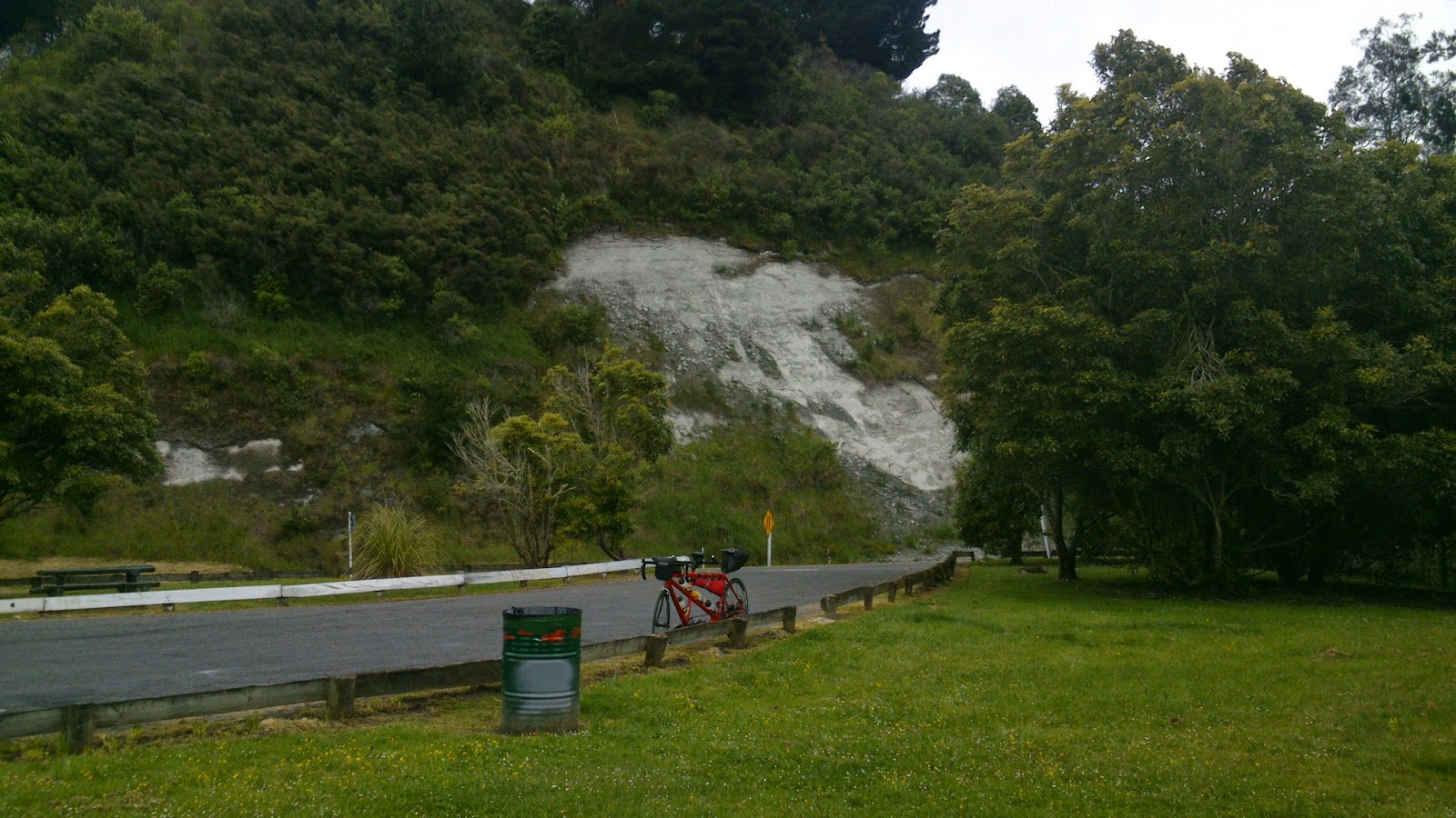 Downhill it might have been, but time had marched on, and when we saw a picnic table at the turn away from Rangiwahia, we took the opportunity to sit in the sun for a while. On the mountain bikes a few years earlier, we'd been able to stay off SH1 a bit more successfully, but this time we had to stick to the seal, and emerged onto the highway at Mangaweka.