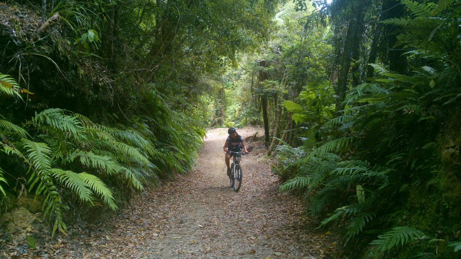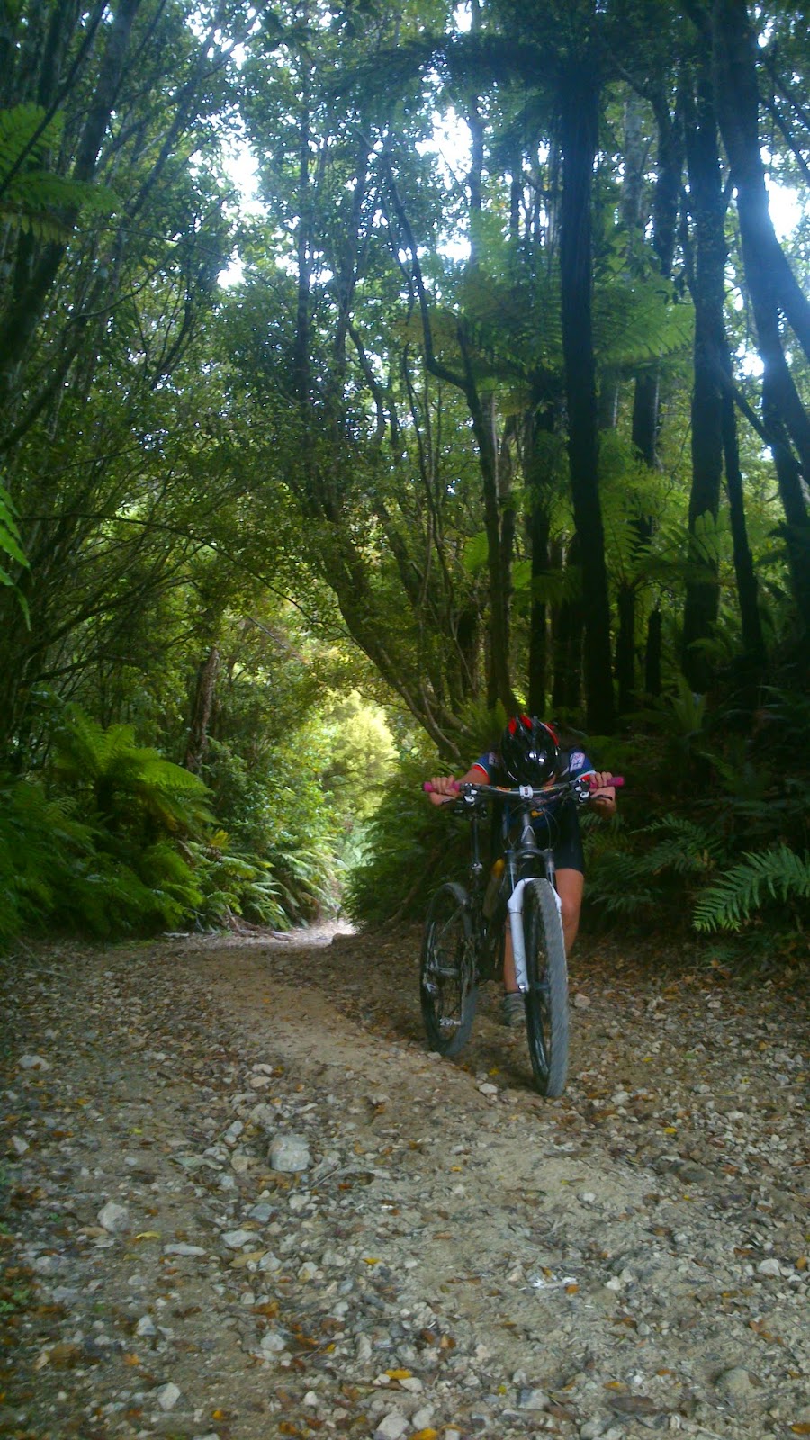 The riding was was going really well, and the track continued to be in stunning condition. I pointed out where the classic course turns to the left towards the bottom of Doper's, and headed straight ahead to cut through the Whakatiki Forest onto Campbell Mill Road.