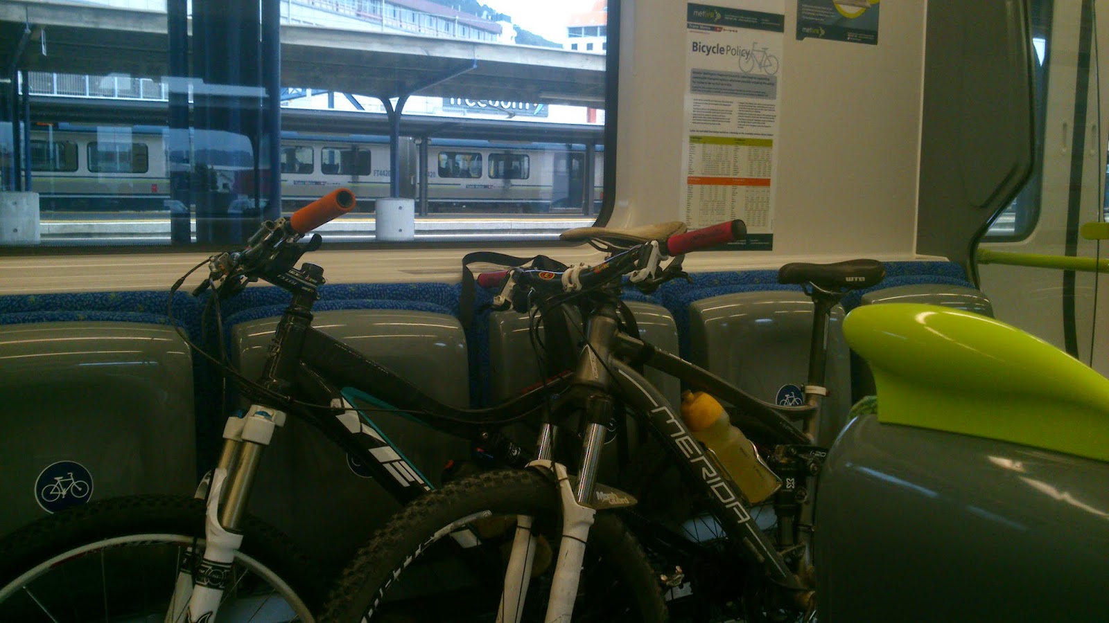 The next train to Upper Hutt was due to leave in only a few minutes, so once we'd bought our tickets we made straight for the platform, and soon had our bikes stowed in the space allocated for them.