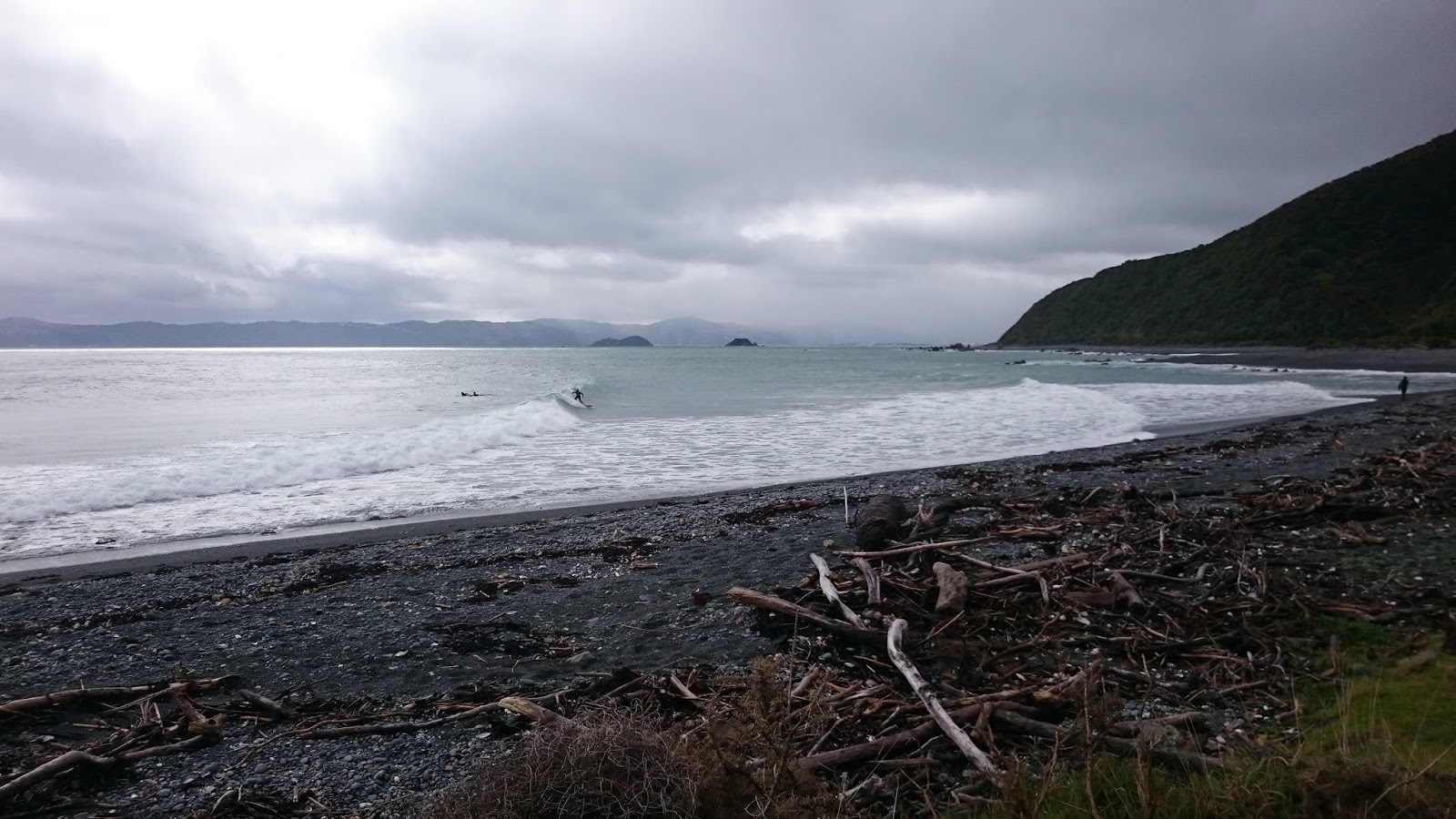 The road-end soon came into view, and I kicked myself for not telling Sarah I had a spare car key with me, and to ask that they leave the Corolla in Seaview. Despite promising to ring at the road-end, I figured another 10 minutes waiting in the cafe at Days Bay was no bad thing, and opted to keep my hand out of the elements until we got there.