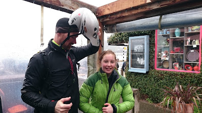 The fly in the ointment was the weather. Kaitlyn and I had a brief txt exchange this morning: "How inclined are you to go for a ride in unlovely conditions?!" elicited the delightful response: "I think I would still be keen to ride. Unless it's super duper unlovely". And then it was off to pack the storm gear!