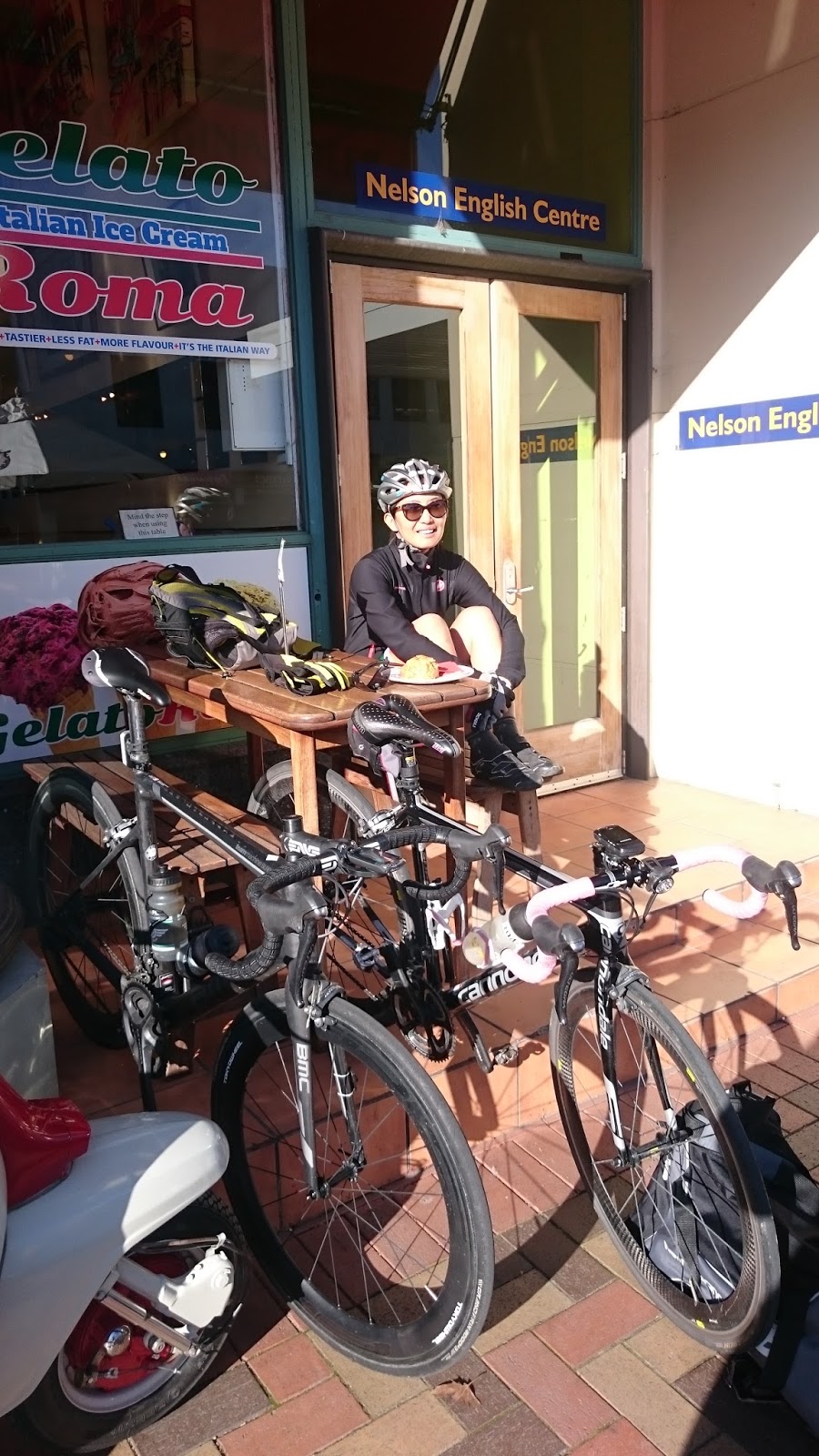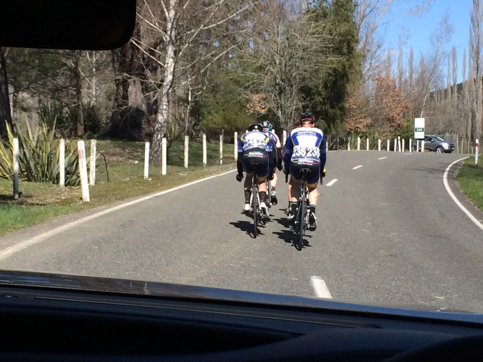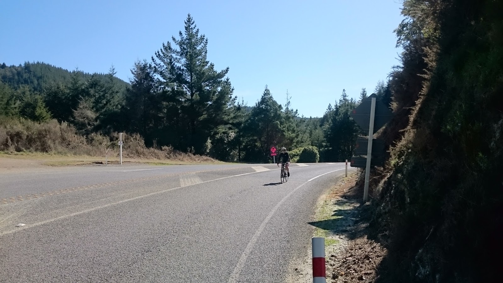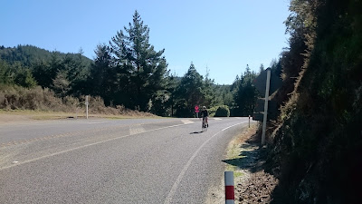 Despite racing along these roads quite a few times, and the occasional training ride, I didn't recall ever taking in the surroundings to the same extent. From time to time I'd drift into the centre of the lane and ride alongside Kaitlyn for a bit, chatting briefly before the next car would force me back in front. I told her how horrible it was to race here in a northerly wind. "You get to the coast feeling like superman, and then turn back uphill and into the wind. Bam, it's like you've hit a wall..."