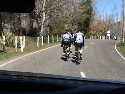 At one point someone's driveway had belched a lot of gravel onto the road. I held my line and shouted back "we're about to do some mountain biking!" Sometimes it's bloody nice to ride on the road and actually enjoy the blemishes!