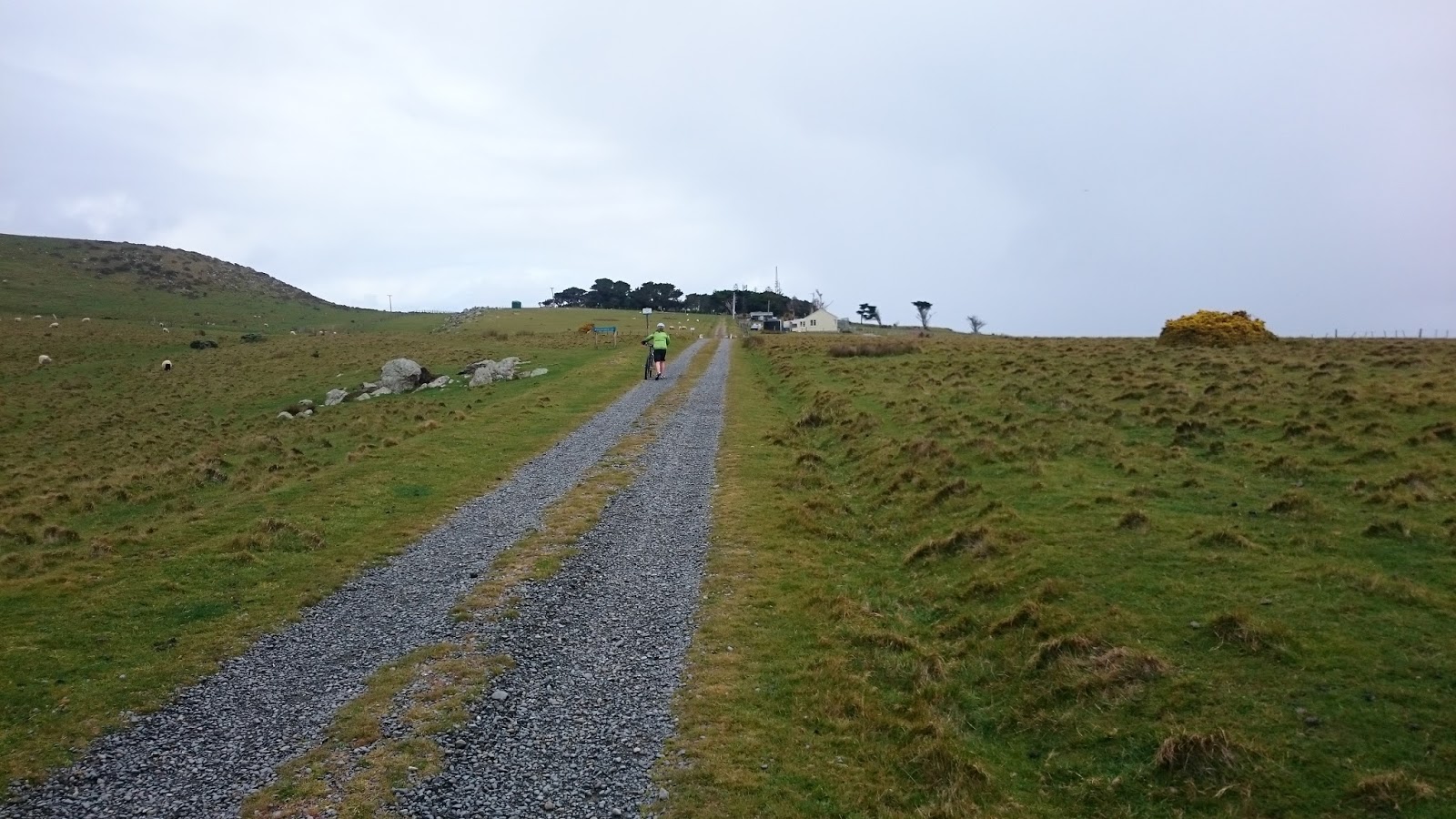 The climb onto the headland was mellow, but the wind was strong and cold, and we'd been out in it for over two hours by this stage. It was taking its toll on Kaitlyn's energy levels and consequently her speed. We decided to get off and walk for a bit, and when I stopped to take my damn glove off again, I suggested she keep going.