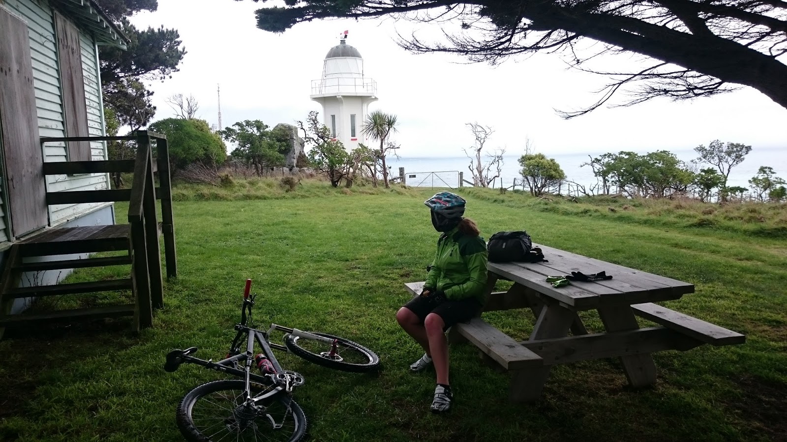 We made our way through a gate into what was presumably the lighthouse keeper's garden, and found a perfectly located picnic table. It had a great view, but more importantly, it was sheltered from the biting southerly.